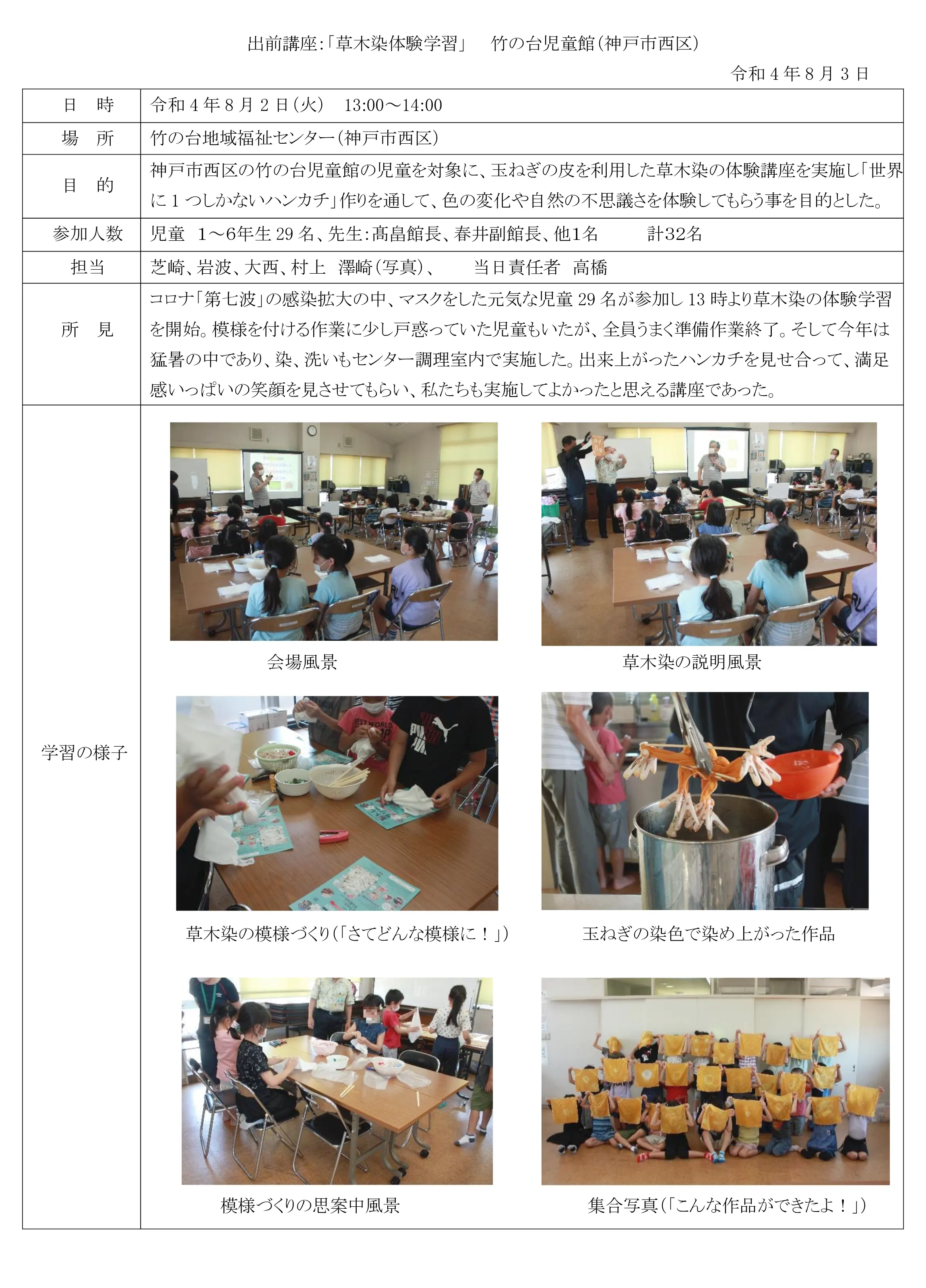 2022.08.02 開催の状況報告 竹の台児童館「草木染体験学習」 竹の台児童館のホームページです