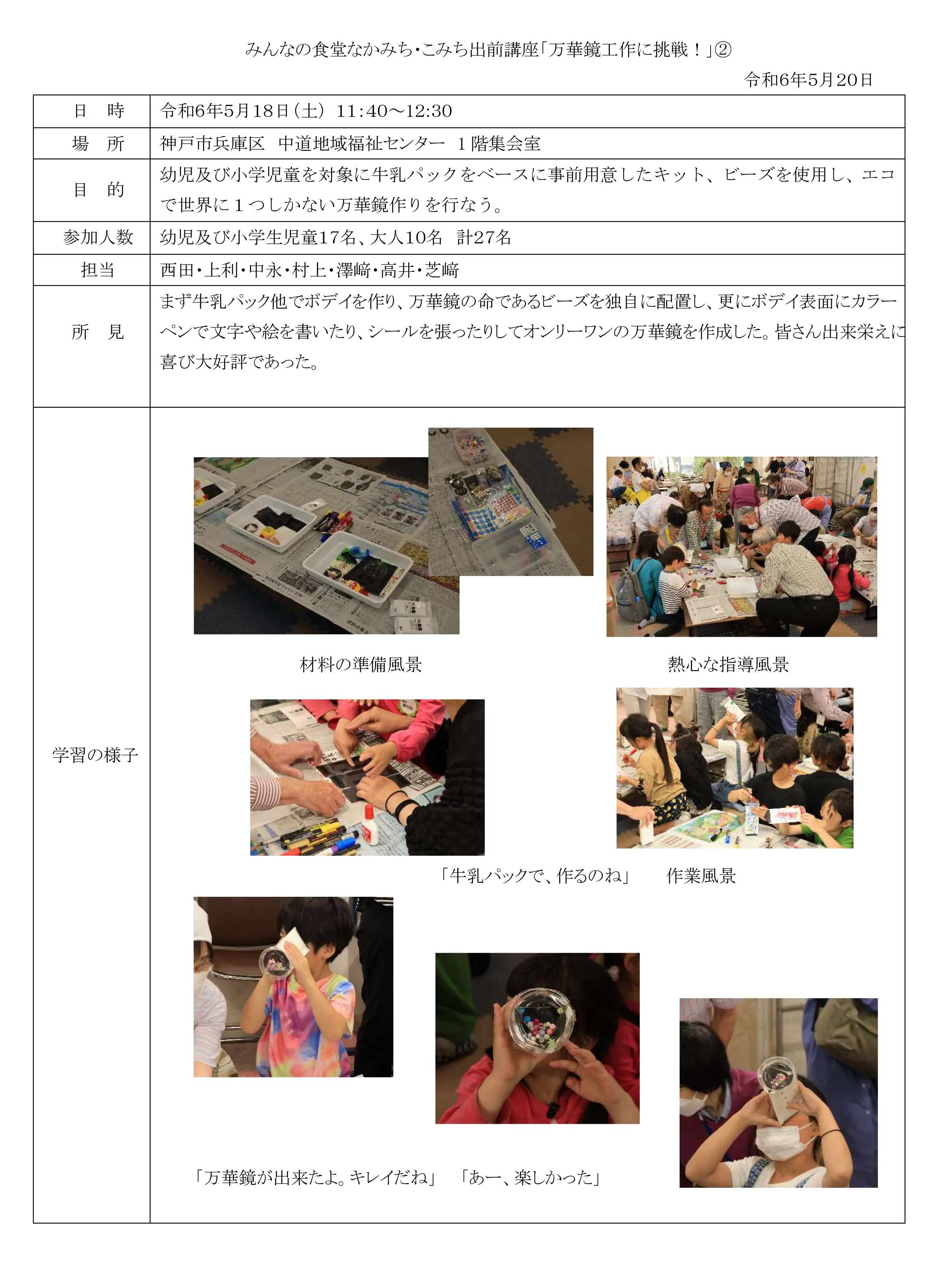 みんなの食堂なかみち・こみち「万華鏡工作に挑戦!」