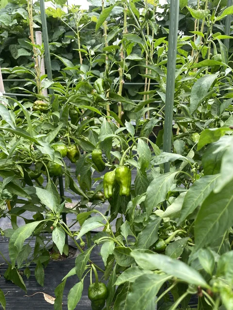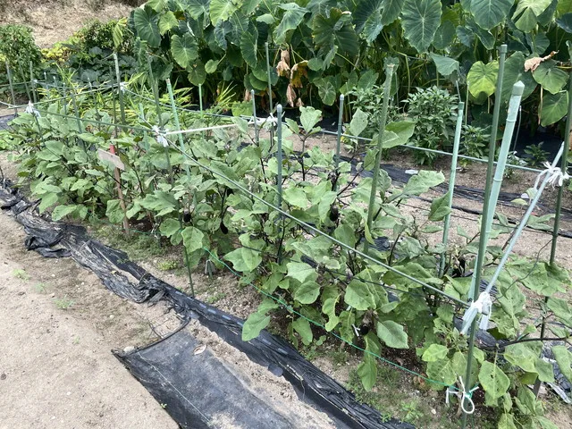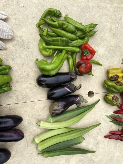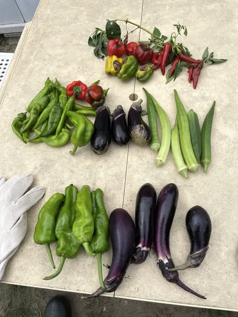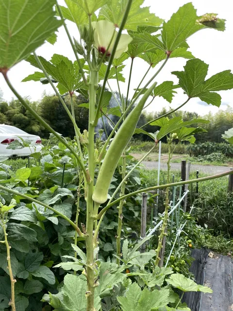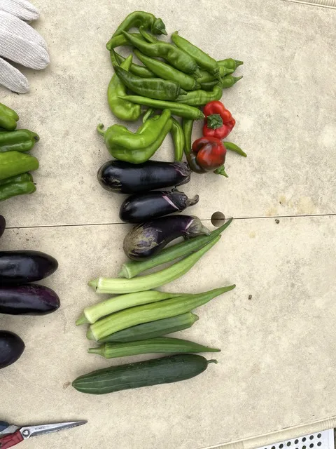 大きく成長したオクラ、ナス、シシトウの収穫をしました