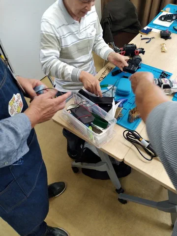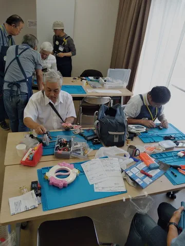 ドクターの皆さんが協力しながら、修理方法を考えています